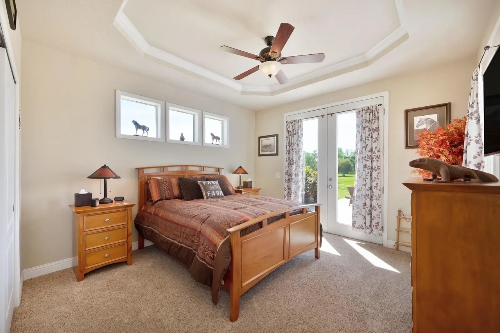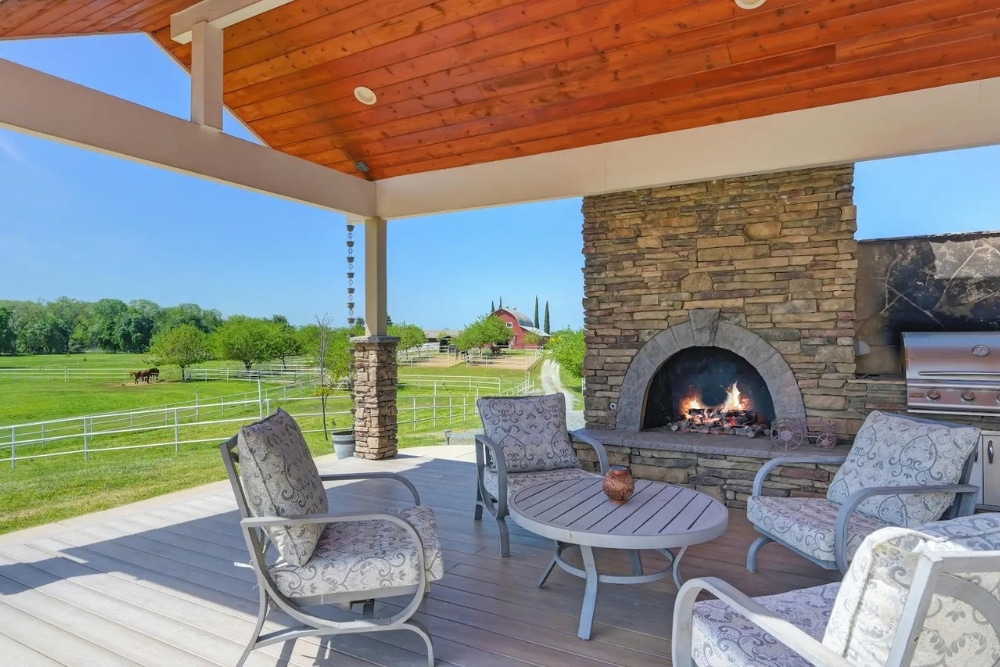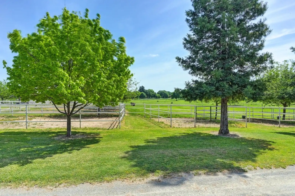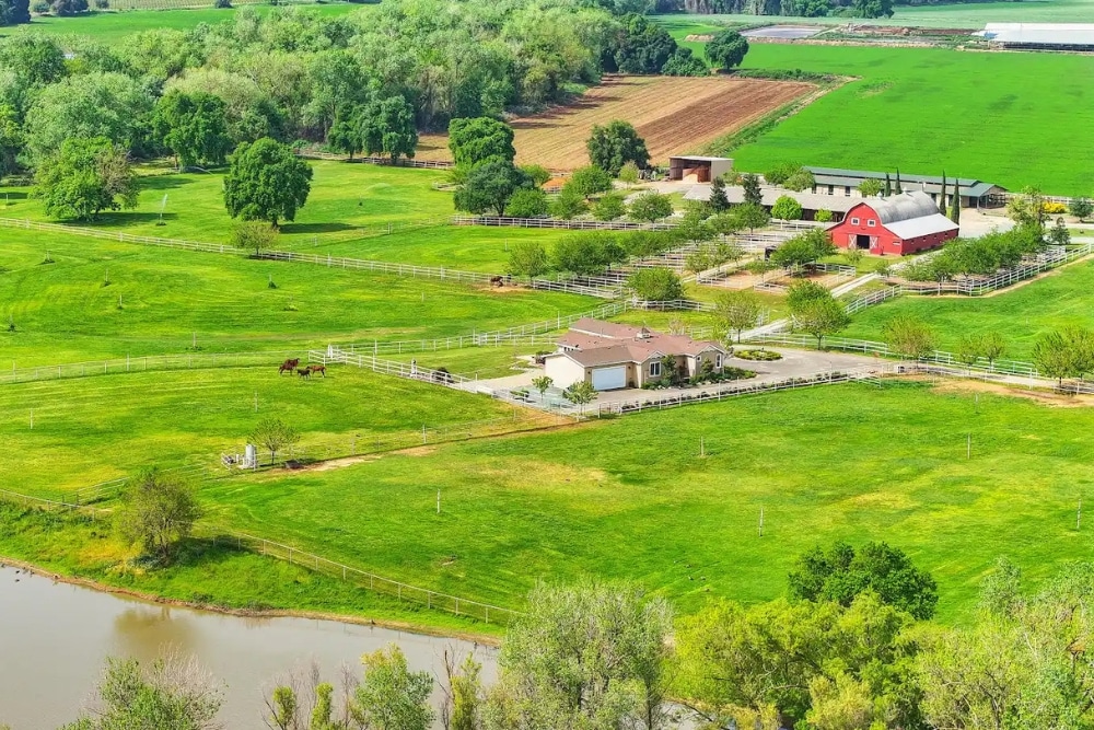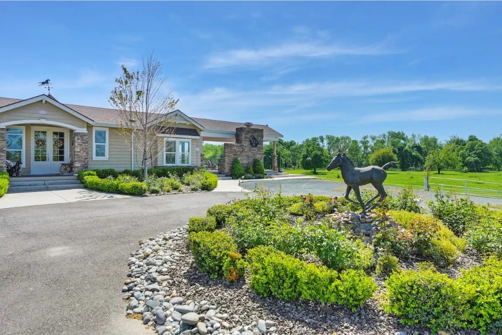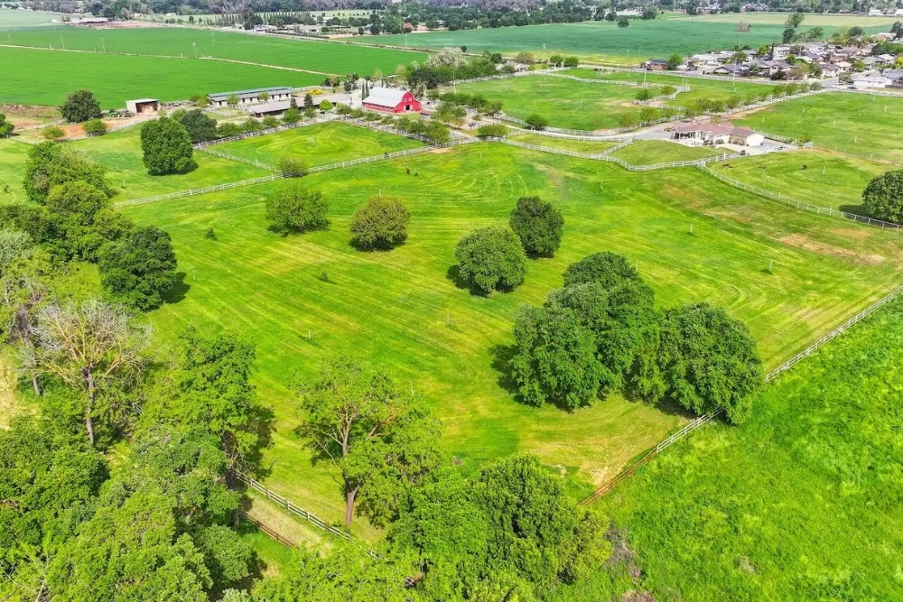 Welcome to Sunny Creek Farm, an equestrian dream property. This beautifully designed and maintained facility is 35+ acres of gently rolling terrain dotted with trees and bordered by a creek. Set back from the road behind electric gates, you will find pipe fenced and irrigated pastures, 3 barns with a total of 40 stalls, Equisizer, Hotwalker, turn-out paddocks plus hay and equipment storage areas. Four wells supply water for the homes and to irrigate the pastures. This country estate consists of two separate parcels of land, with two homes. The original, comfortable ranch home houses full time farm help and has 1848 sq ft, 3 bedrooms, 2 baths, and a fireplace. The second customized home is 1904 sq ft with 3 bedrooms and 3 baths, high ceilings throughout, tile floors, open living room and kitchen area that leads to an outdoor, covered family room with stone fireplace a built-in BBQ and spectacular pastoral views. Relaxing after a day with your horses in this handsome home with gentle breezes and spectacular sunsets is country living at its best!
