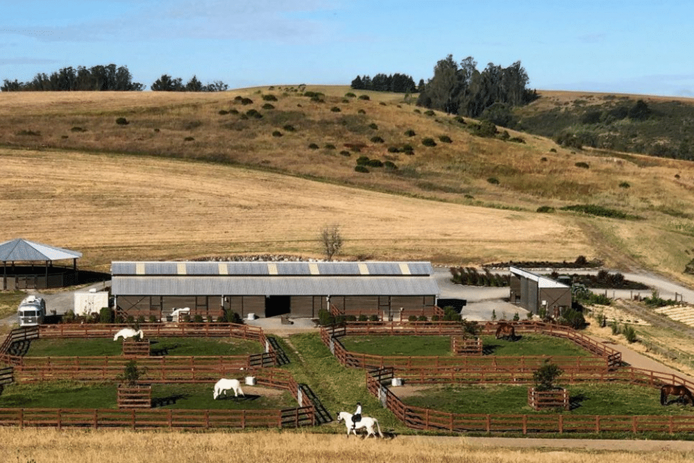 Spanning 113 gorgeous acres with sweeping panoramic views, this state-of-the-art equestrian facility in West Petaluma, offers an 8-stall barn with an office, high-speed internet, video monitoring, turn-out pastures, run-in shelters, and a 100′ x 220′ outdoor arena—ideal for top-level training.